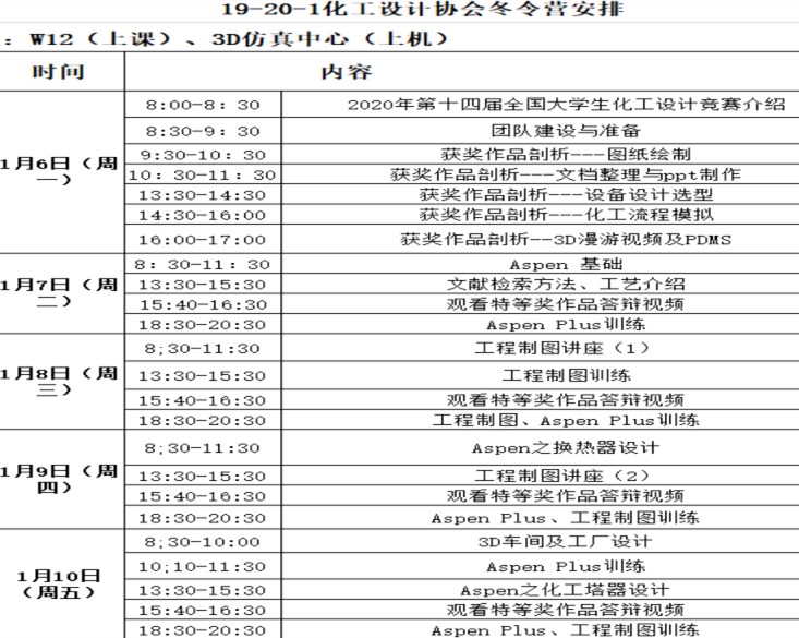 为筹备第十四届全国大学生化工设计大赛,培养学生的创新能力与工程设计能力,外围官网于1月6日至1月10日在12阶举办2019化工设计培训冬令营。