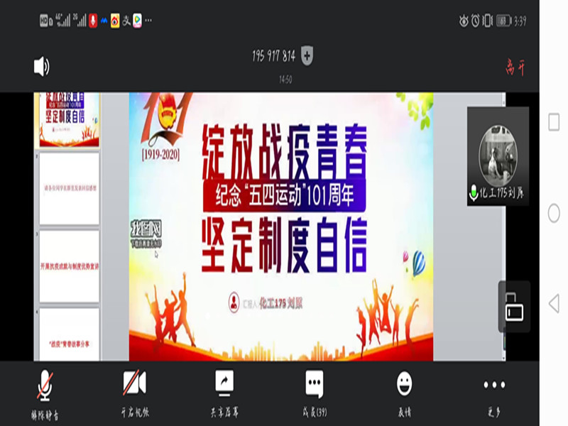 在五四青年节来临之际,为深入学习宣传贯彻习近平总书记关于疫情防控工作的系列重要讲话和指示批示精神,激励和引领广大青年学生进一步坚定制度自信,在党和人民最需要的地方贡献力量、绽放青春,外围官网各团支部广泛开展“绽放战疫青春·坚定制度自信”线上主题团日活动。