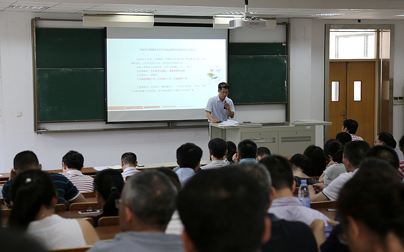 为加强外围官网师德师风建设,引导广大教师提高职业道德修养,2020年6月30日在明行楼112教室,外围官网开展师德师风专题讲座,外围官网全体党政领导及全体教职工参加了讲座,此次讲座由党委书记吴荷平主持。