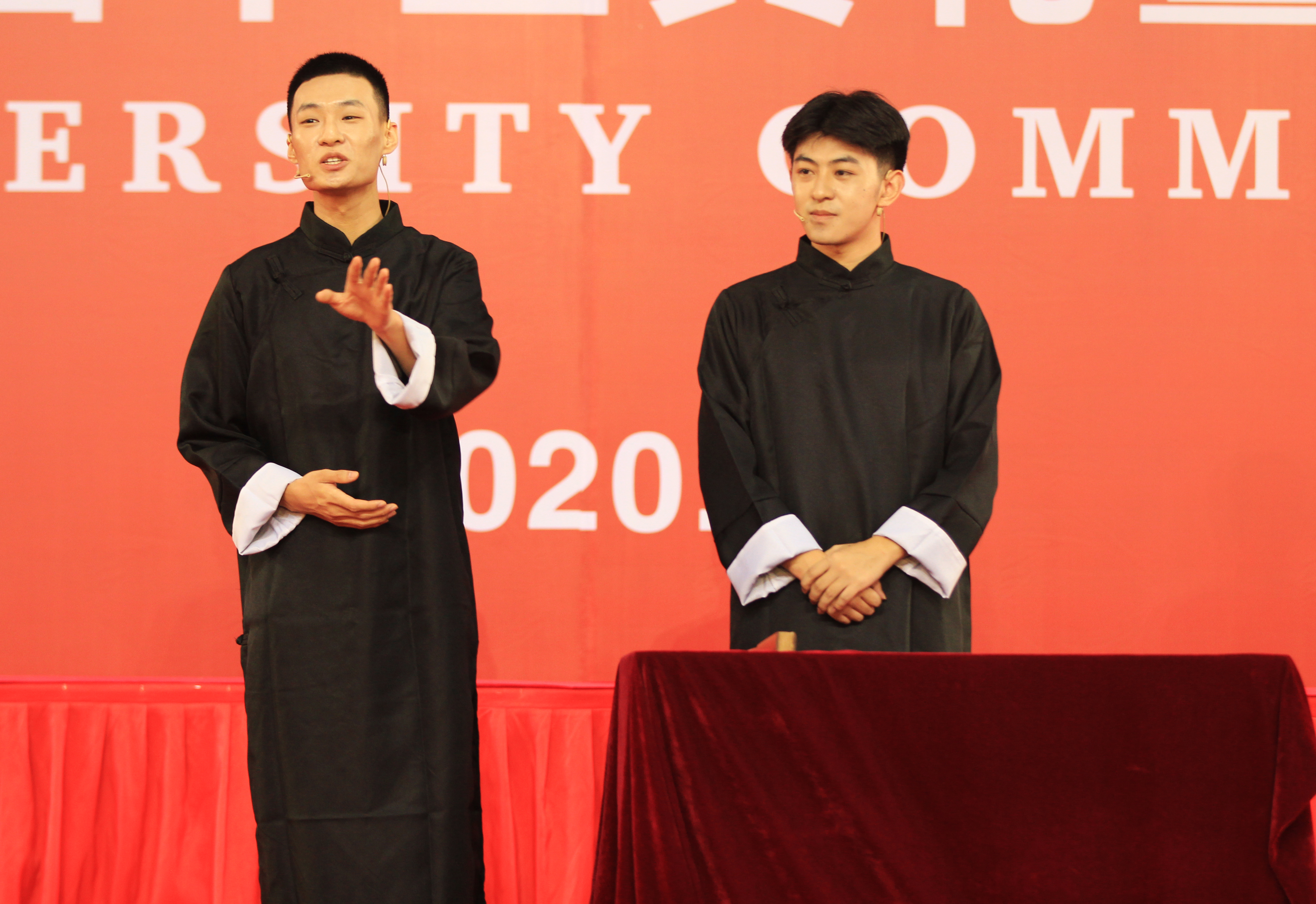 青春花开花红,离别才知情浓。毕业小剧场环节,毕业生李昊泽、赵广钰带来的相声《炼金术士》幽默风趣。音乐剧《拾光的记忆》情怀满满,倾诉着同学们对青春的不舍,道出了毕业生对母校深深的依恋。最后,全体毕业生挥舞双手,合唱一曲《化说再见》。毕业典礼在感怀母校、追忆青春的氛围中落下帷幕。祝愿2020届毕业生前程似锦。