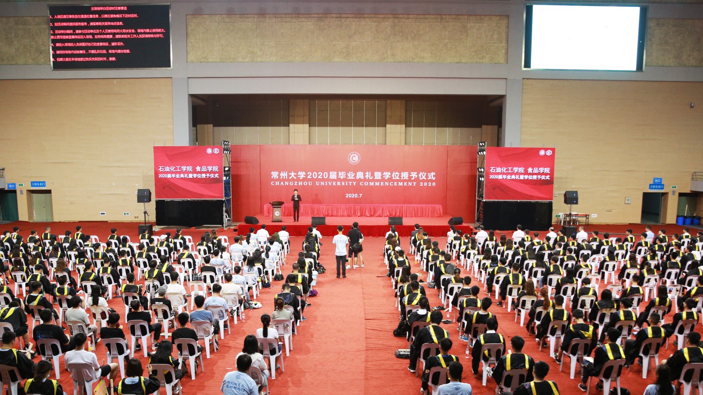7月6日下午,十大体育外围平台app石油化工学院食品学院2020届毕业典礼暨学位授予仪式在体育馆举行。校党委书记陈群,学院领导和学位委员会成员,以及教师代表们与全院四百余名学生一同见证了这难忘的时刻。