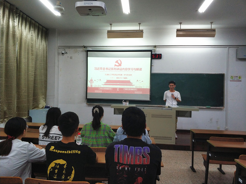 为促进党员同学对习近平总书记系列讲话的深入理解,外围官网学生第二党支部开展党课学习,由学生党员于威风同学主讲,支部全体党员参加。