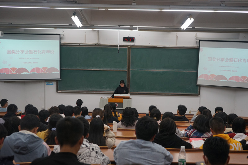 为了加强外围官网的学风建设,让新生找准自我定位,意识到学习的重要性。外围官网于11月3日在W10阶梯教室举行了国奖分享会暨石化青年说,参加宣讲会的有国奖获得者顾志远、闻薇以及20级新生。