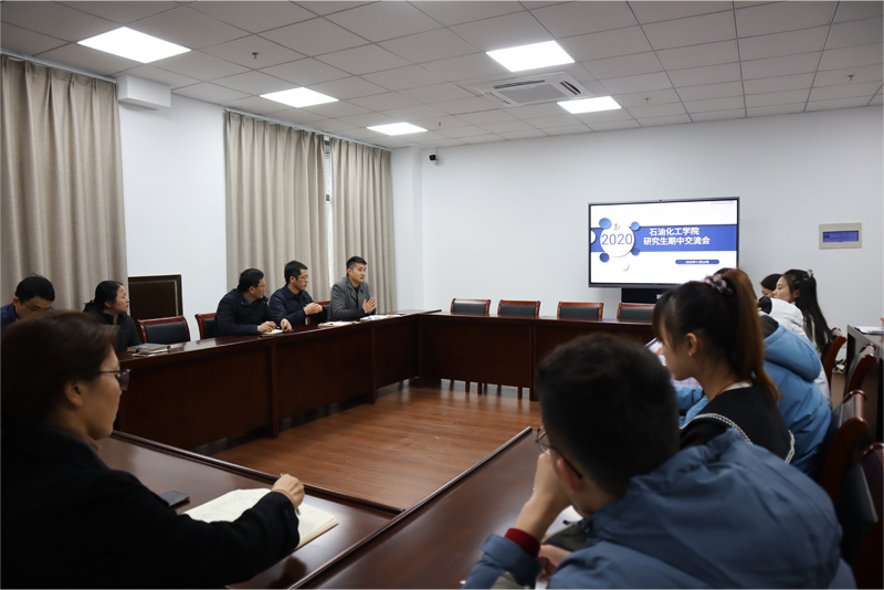 2020年11月25日,石油化工学院研究生期中交流会在测试楼B617举行。此次会议由研究生督导组组长孙小强,石油化工学院党委书记吴荷平,石油化工学院副院长黄海,研究生教务秘书喻丹,研究生辅导员陈科,新聘硕导代表及各班学生代表出席。