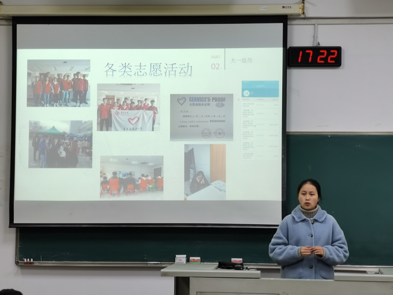 活动中,两位代表都结合自身学习经历和获奖经验,分别从学习、工作和生活方面做了重点交流。赵云主要通过讲述自己准备比赛和参与比赛的经历,鼓励同学们学会自己抓住机会,勇往向前。喻荣融就学习考证方面展开详细讲解,建议同学们利用好平日的学习时间,并在学有余力的时候多多参加各类竞赛。活动最后,两位代表告诉同学们无论什么时候开始努力都不算晚。