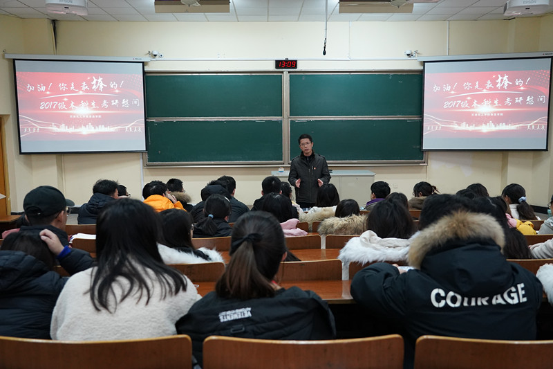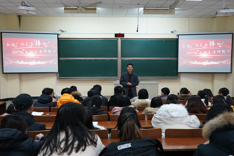 为坚定学生的考研信念,增强考研自信心,积极面对考研,缓解考研压力,12月8日,外围官网在W7召开了2017级本科生考研慰问会,参加会议的有院党委书记吴荷平、院长陈海群、副书记宣慧、副院长刘文杰、黄海、院关工委代表缪凤仙、学院本科生辅导员以及2017级考研学子。