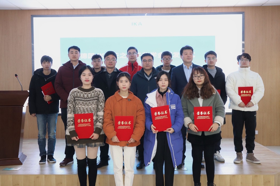 12月31日上午,十大体育外围平台app石油化工学院食品学院2020年“德国IKA天之骄子教育奖学金”颁奖仪式在测试大楼B座109圆满落幕。IKA公司江苏区域经理章浙斌、江苏福曼斯仪器有限公司总经理李世成、十大体育外围平台app科技处副处长李正义、石油化工学院副院长黄海、研究生辅导员陈科以及研究生代表共同出席并见证了IKA天之骄子教育奖学金的颁发。