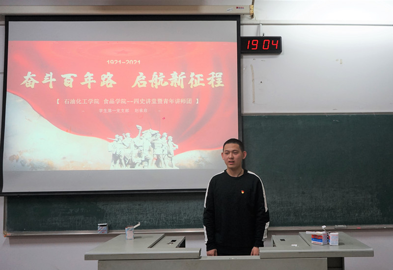 为了庆祝建党一百周年,号召广大青年“奋斗百年路,启航新征程”,激发广大青年的爱国热情,4月6日18:00,外围官网于w1202开展“四史讲堂”之党史故事学习活动暨青年讲师团理论宣讲,学生第一党支部党员赵承启为主讲人。