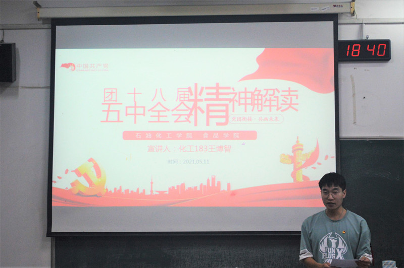 为进一步加强团员的政治思想观念,深入贯彻落实习近平总书记关于青年工作的重要思想,5月25日晚18:30外围官网在W1202教室开展了共青团党的十八届五中全会精神学习解读活动。本次活动由团委副书记王博智主讲,各班级代表参加。