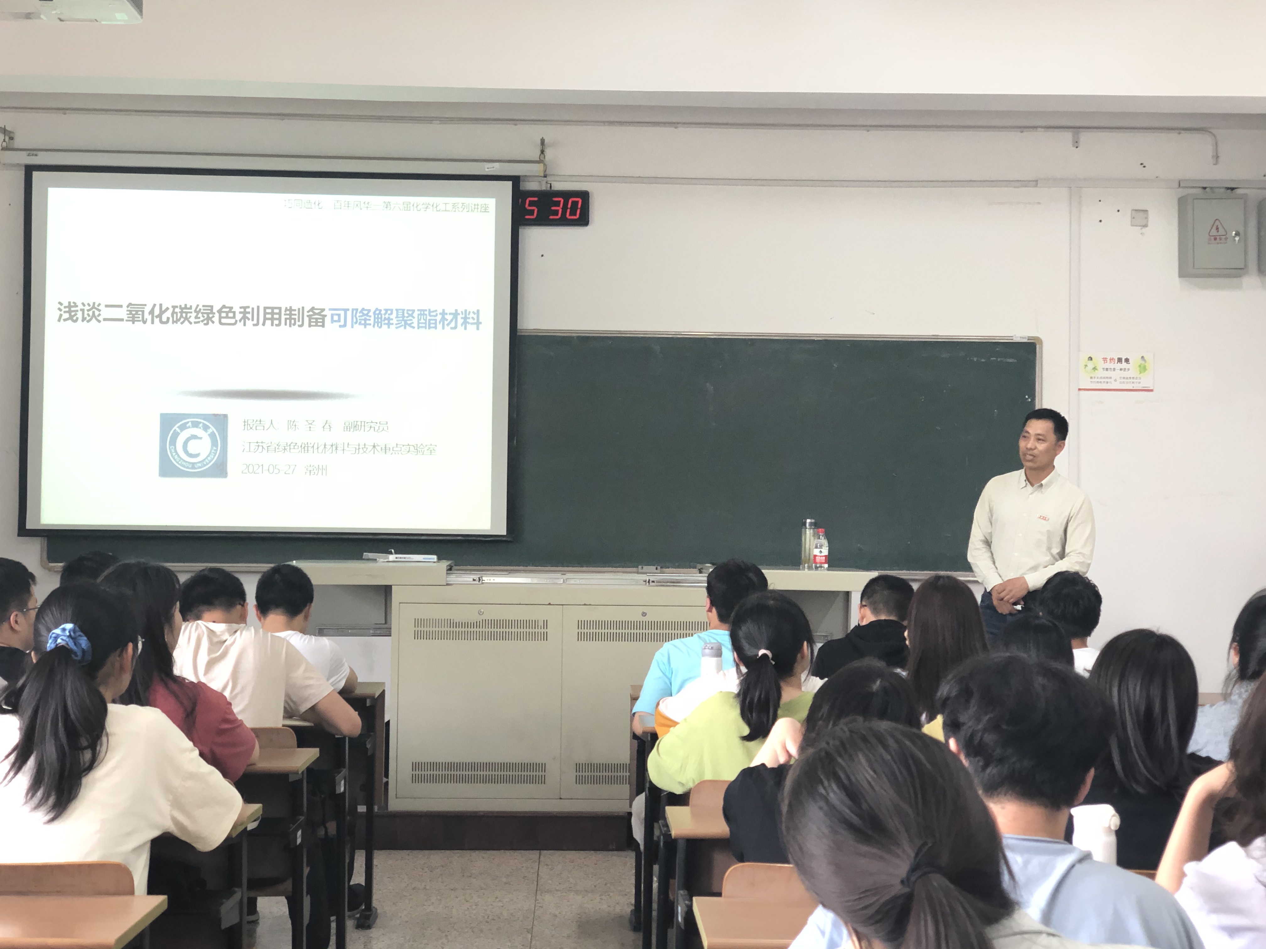 陈圣春从二氧化碳绿色利用制备可降解聚酯材料的研究现状出发,介绍了其团队的研究内容和方向,通过讲座同学们加深了对二氧化碳绿色利用制备可降解聚酯材料的认知。