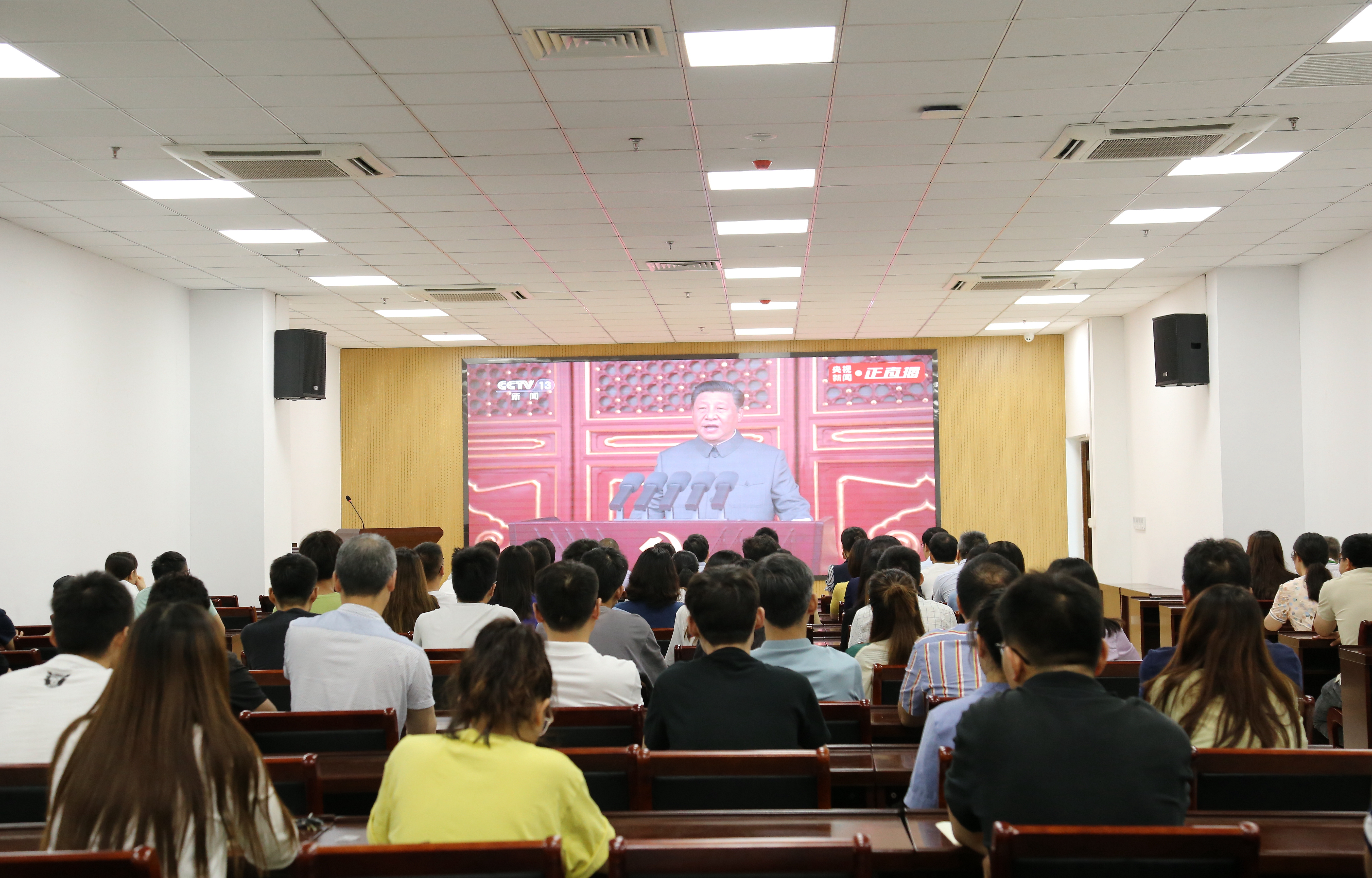 为迎接建党100周年华诞,7月1日,外围官网组织教师、学生党员、入党积极分子、团员等在测试楼B座109会议室、3D仿真中心、寝室等地认真收看了中国共产党成立100周年庆祝大会直播。